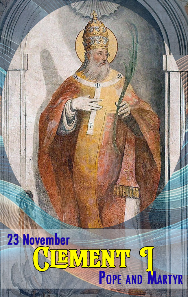 St Clement, the son of Faustinus, a Roman by birth, was of Jewish extraction; for he tells us himself that he was of the race of Jacob. He was converted to the faith by St. Peter or St. Paul, and was so constant in his attendance on these apostles, and so active in assisting them in their ministry, that St. Jerome and other fathers call him an apostolic man; St. Clement of Alexandria styles him an apostle; and Rufinus, almost an apostle. Some authors attribute his conversion to St. Peter, whom he met at Cesarea with St. Barnabas; but he attended St. Paul at Philippi in 62, and shared in his sufferings there. We are assured by St. Chrysostom that he was a companion of the latter, with SS. Luke and Timothy, in many of his apostolic journeys, labours, and dangers. St. Paul (Phil. iv, 3) calls him his fellow-labourer, and ranks him among those whose names are written in the book of life; a privilege and matter of joy far beyond the power of commanding devils. (Luke x. 17) St. Clement followed St. Paul to Rome, where he also heard St. Peter preach, and was instructed in his school, as St. Irenaeus and Pope Zosimus testify. Tertullian tells us that St. Peter ordained him bishop, by which some understand that he made him a bishop of nations, to preach the gospel in many countries; others, with Epiphanius, that he made him his vicar at Rome, with an episcopal character to govern that church during his absence in his frequent missions. Others suppose he might at first be made bishop of the Jewish church in that city. After the martyrdom of SS. Peter and Paul, St. Linus was appointed Bishop of Rome, and after eleven years, succeeded by St. Cletus. Upon his demise in 89, or rather in 91, St. Clement was placed in the apostolic chair. According to the Liberian Calendar he sat nine years, eleven months, and twenty days.